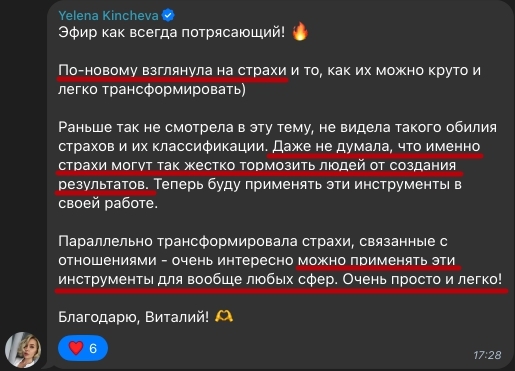 Одна только эта технология за каких-то 10 минут исцелит вас от 90% страхов и даст пошаговый алгоритм превращения их в Новые Навыки, которые помогут привлекать осознанных платёжеспособных клиентов.